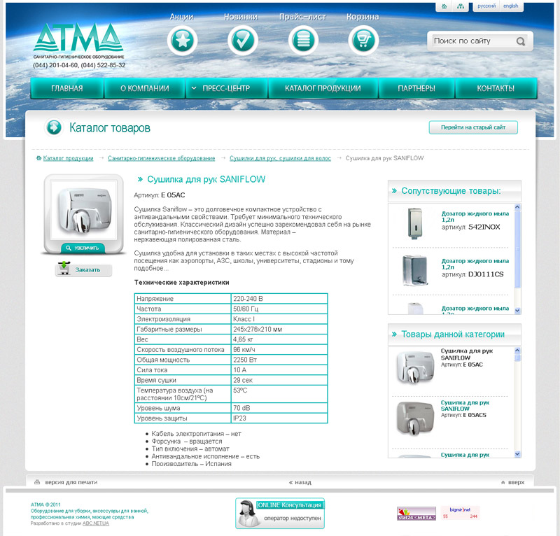 Адрес сайта: http://atma.ua Задача: сделать новый вариант сайта компании с учетом усложнившейся структуры каталога. Решение: новый, приятный и удобный дизайн интерфейса, использование динамических закладок для отображения структуры каталога, обновленная система формирования заказа. Язык сайта: русский, english. Поддержка сайта: полностью администрируемый заказчиком сайт.