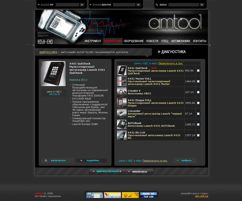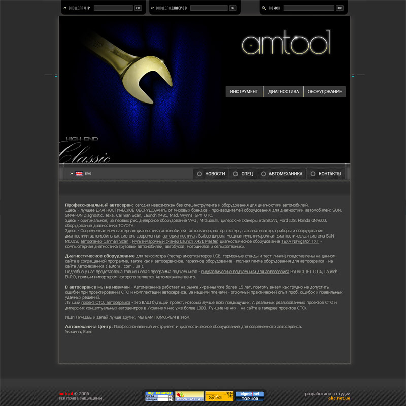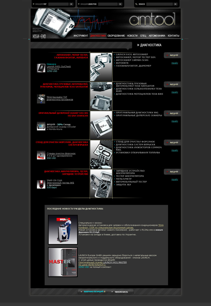 Адреса сайта: http://www.amtool.ua Завдання: створити сайт презентації продукції з оригінальним дизайном і системою запиту продукції. Рішення: Створення оригінального дизайну з урахуванням побажань замовника. Розробка зручної системи навігації і оформлення запиту на продукцію. Мова сайту: руська. Підтримка сайту: сайт повністю адмініструється замовником.